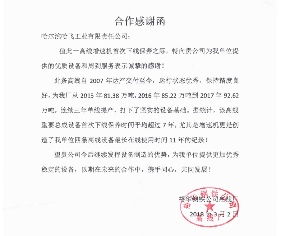 哈爾濱哈飛工業(yè)有限責(zé)任公司旗下的機(jī)電設(shè)備制造產(chǎn)業(yè)是目前國(guó)內(nèi)規(guī)模大、專業(yè)的高速線材軋機(jī)和棒材軋機(jī)整機(jī)及備件的生產(chǎn)制造企業(yè)。公司現(xiàn)坐落于哈爾濱市平房區(qū)汽車零部件工業(yè)園B區(qū),占地面積30000多平方米。現(xiàn)有員工近550人,其中具有中高級(jí)職稱的研發(fā)及工程技術(shù)人員100余人。 公司曾獲得冶金部授予的“高線軋機(jī)設(shè)備優(yōu)單位”稱號(hào)、國(guó)家技術(shù)進(jìn)步二等獎(jiǎng)等獎(jiǎng)項(xiàng),公司生產(chǎn)的十八項(xiàng)高線軋機(jī)重要部件通過了技術(shù)鑒定... +MORE